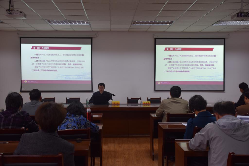 全体教职员工作了“学习贯彻校第三次党代会精神”专题报告。91传媒