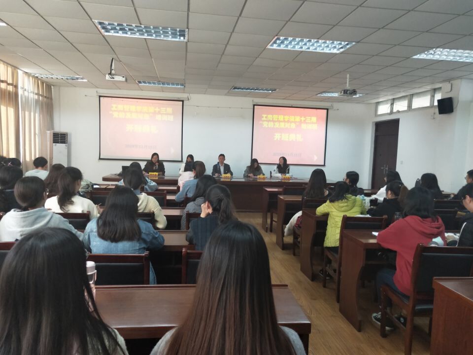 党委书记万绪才、本科生第一党支部书记冯玲、本科生第二党支部书记赵菲、研究生党支部书记桂竹妍,以及本期培训班44名学员参加了开班典礼。开班典礼由学院党务组织员、研究生党支部副书记、本期培训班班主任邱祥霞主持。
