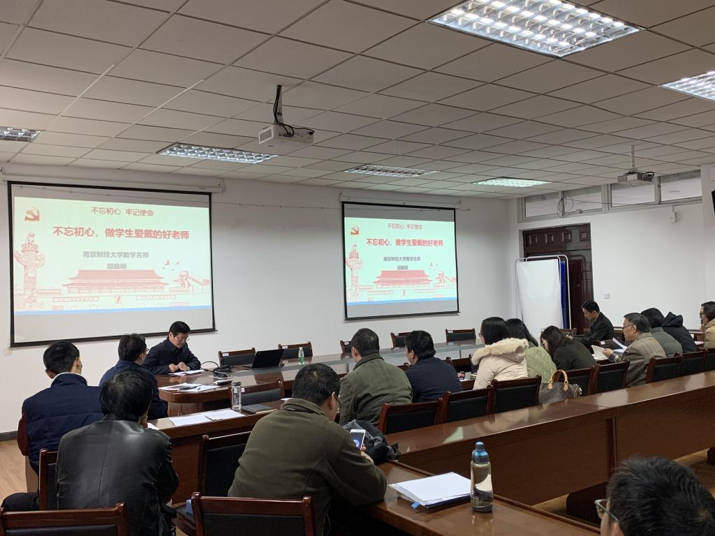 教学名师胡晓明教授做“不忘初心,做学生爱戴的好老师”的报告。人力资源管理与旅游管理系全体党员参加会议。会议由支部书记秦伟平主持。