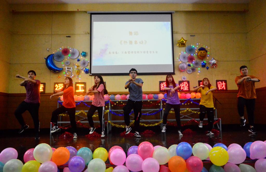联欢会在热辣舞蹈《Solo》中拉开帷幕。研究生带来的一曲《外面的世界》将观众带入美好旧时光;小品《藏在照片里的故事》通过一张张旧照片引出背后的故事,生动再现了大学四年美好记忆;由分团委学生会带来的《热舞串烧》把民族歌曲与现代街舞相互融合,将全场气氛推到高潮;毕业生对唱曲目《栀子花开》唱出大学甜蜜而青涩的初恋;毕业班辅导员冯玲老师领衔出演的小品《辅导员的一天》浓缩了大学辅导员四年的辛勤付出,也道出了毕业班老师的真挚关怀和美好祝福;诗朗诵《睥睨风华》里铿锵有力的声音,加上灵光闪烁的眼眸,表达了在校生对学长学姐最美的期许;辅导员聂志平老师深情献唱《心要让你听见》使全场掌声不断,气氛热烈;光影舞蹈《Wota艺》绚丽璀璨,流光溢彩,引发现场阵阵欢呼;小品《商院电台》笑料不断,包袱满满,用生动有趣的语言再现了南财学子的学习和生活。