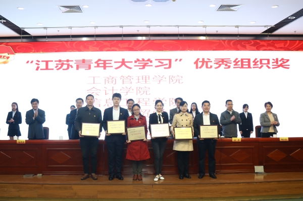 4月29日下午,我校纪念五四运动一百周年暨表彰大会在仙林校区图书馆报告厅举行。会上,党委研究生工作部部长韩力争宣读《关于表彰91传媒 “江苏青年大学习”优秀组织学院的决定》,随后举行了隆重的颁奖仪式,91传媒 荣获91传媒 “江苏青年大学习”优秀组织学院,党委副书记杨华代表学院上台领奖。