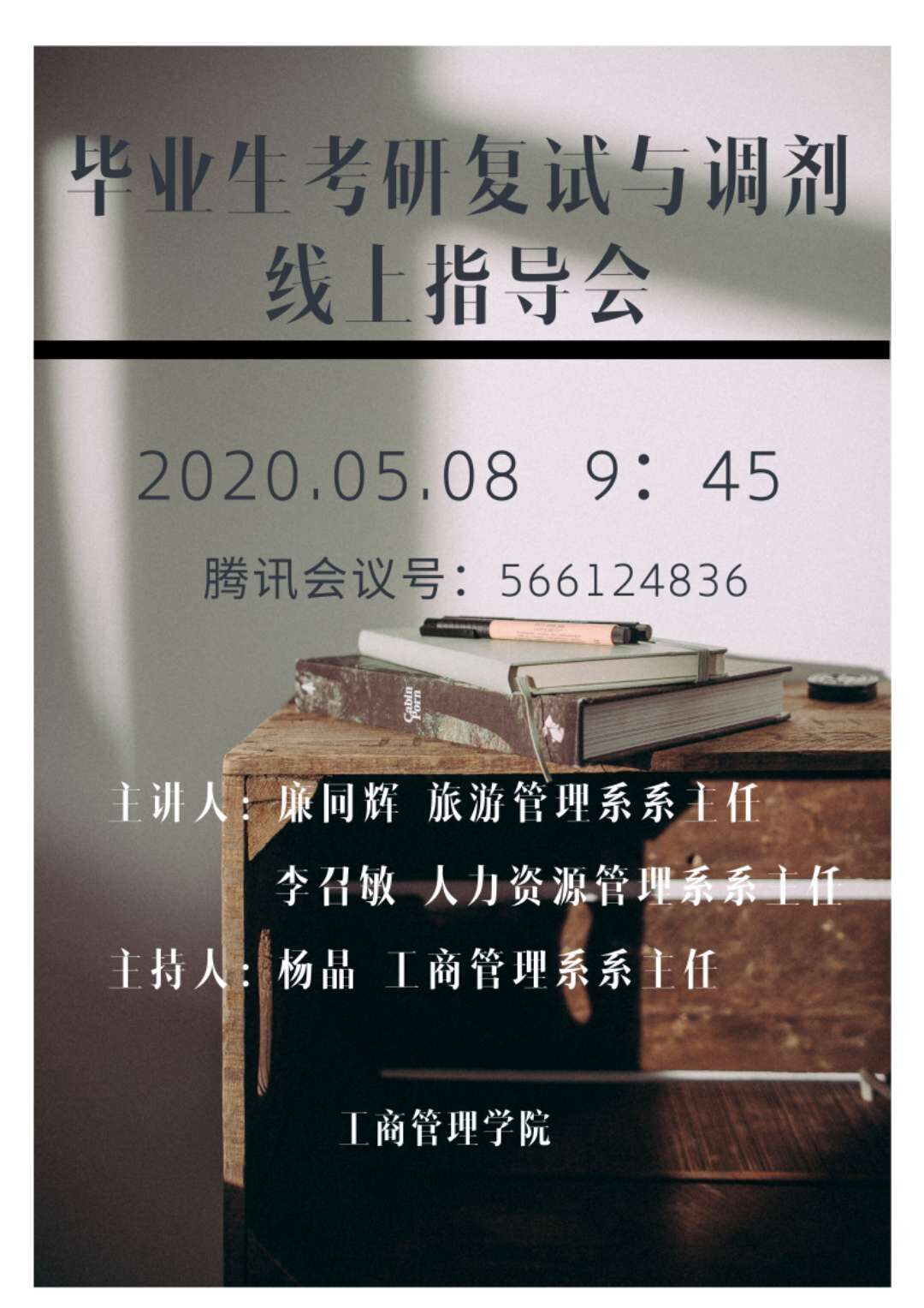工商管理系主任杨晶、人力资源管理系主任李召敏以及旅游管理系主任廉同辉作主讲嘉宾,分别为同学们讲解在研究生复试与调剂中应该注意的问题,同时开展了模拟复试,2020届部分考研学子参加讲座。