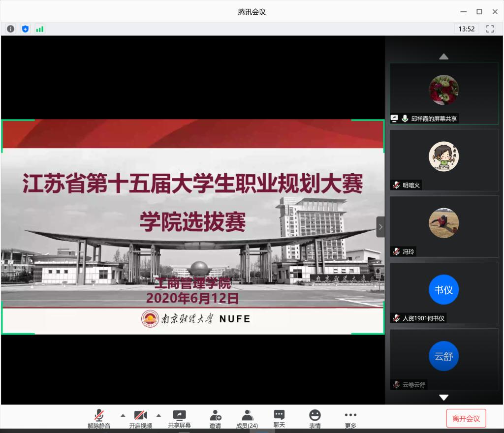 通过腾讯会议举办了第十五届大学生职业生涯规划大赛学院选拔赛,经过前期职业生涯规划书的筛选,共有14位选手脱颖而出进入决赛。教育部职业指导师、全球职业生涯规划师、江苏省教育厅就创业指导专家、91传媒