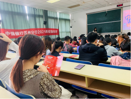 91传媒 于2020年10月13日下午在德业楼Z4-112顺利举办中信银行苏州分行招聘宣讲会活动。出席本次活动的嘉宾是中信银行人力资源部杨雪晨以及各支行代表,91传媒 以及其他兄弟学院的2021届毕业生到场参会。