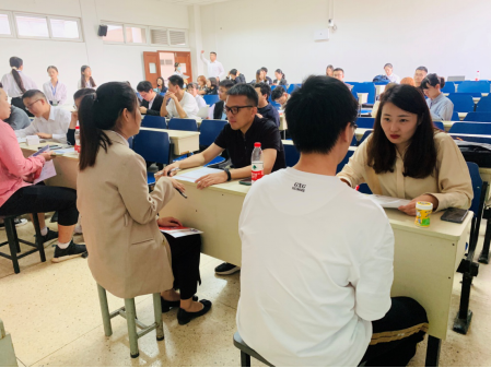 六位中信支行代表上台介绍相关情况,通过对公司的发展史、发展战略以及公司福利等情况的详细介绍,让同学们对该企业有了进一步的了解,并提出“做一个有温度的银行”的理念。宣讲会后进行了现场面试。据悉,最终的面试结果将由中信银行相关人员通过线上通知。