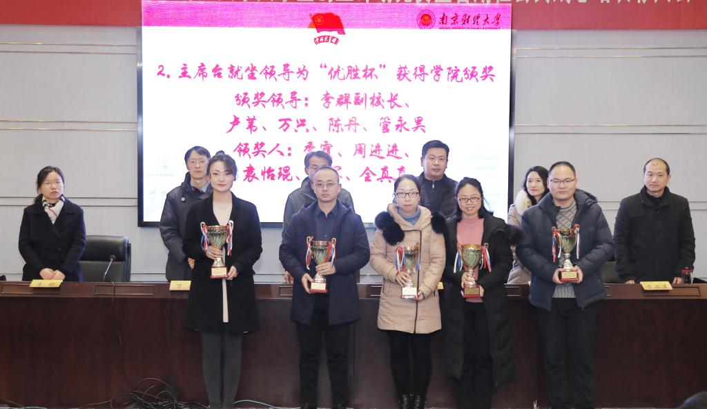 党委副书记全真真老师(前排左一)代表学院领取“优胜杯”