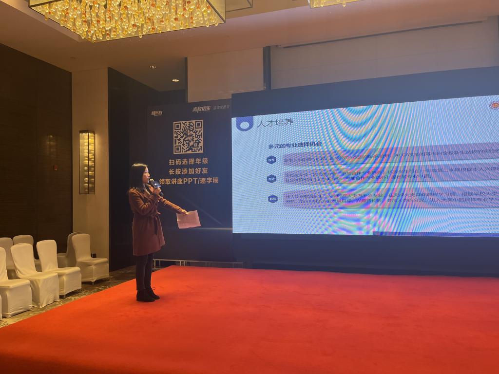 的学校概况、师资队伍、学科优势、人才培养、就业情况和招生政策等方面展开宣讲。在家长咨询环节,针对家长所关心的专业选择、学费标准和往年录取分数等问题,团队成员进行了细致解答,使南财教学质量优秀、校园文化丰富、就业形势良好的形象深入人心,也为考生及家长精准定位目标学校和专业提供了帮助。