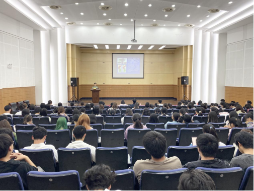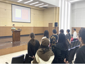 活动伊始,陆华教授从爱国电影《志愿军》导入,展开对《抗美援朝——伟大的战争 伟大的精神》内容的讲解。陆华教授详细介绍了抗美援朝战争的始末及当今国际形势下,我国发展遇到的战略机遇和风险挑战。她号召同学们必须增强忧患意识,坚持底线思维,做到居安思危、未雨绸缪,时刻准备经受风高浪急甚至惊涛骇浪的重大考验,始终发扬祖国和人民利益高于一切的爱国主义精神。最后,在陆华教授的带领下,全体师生起立慷慨激昂歌唱《中国人民志愿军战歌》。