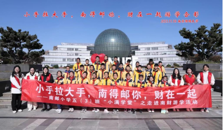 学生会携手南师附中仙林学校小学部南邮校区举办“南得邮你,财在一起”小学生进大学校园游学活动,南邮小学1年级和5年级近80名学生参加活动。此次活动通过制作多彩风车、剪绘校徽等手工活动与参观校史馆、体育馆以及游戏互动的方式带领小学生及家长代表们走进南财校园,融入大学校园氛围。