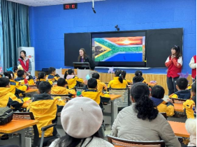 活动伊始,小朋友们来到博文楼智慧教室,由南财留学生为同学们介绍自己家乡的语言、美食和风景名胜等文化特色。小朋友们认真倾听,热情回应并主动学习“你好”、“谢谢”的外语发音,了解到了南非、韩国、格鲁吉亚等国家的地域文化和风土人情,深切感受到话语间传递的文化多样之美。