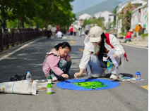 志愿者们在工作人员的带领下分好组到达各自负责地点,为井盖事先刷上底漆。活动在上午9点准时开始,迎着阳光,家长和孩子们跟随志愿者有序领取绘画工具和材料,一起在对应的井盖上开始创作。活动过程中,志愿者亲切耐心地引导孩子们打底、勾线、上色,尽情释放童真与创意。家长们也加入其中,和孩子们一同体验这份久违的童趣,收获劳动的喜悦,用画笔将脚下井盖描绘成龙尚路的靓丽风景。