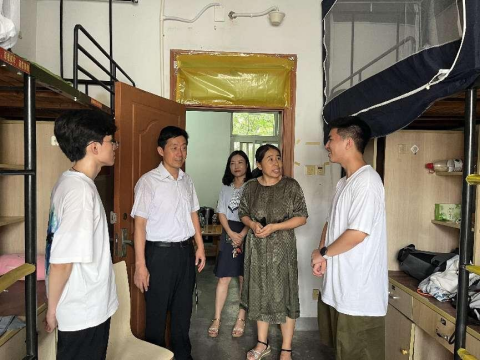 下午五时许,院党委书记张杰、院长万绪才一行走访学生宿舍,与新生及家长热切交谈。