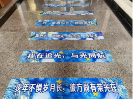 国家奖学金获得者风采展示墙,在学长学姐们闪闪发光的事迹指引下,新生们沿着贴有和“光”有关的励志短语及管理学名人名言的星光大道前往报到地点,不少新生在此拍照打卡。
