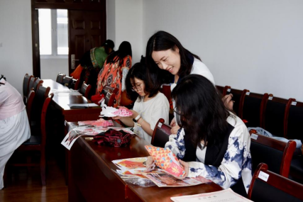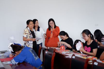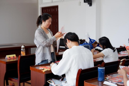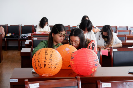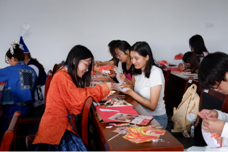 接下来,同学们以小组为单位,开展剪纸、灯笼的手工制作,让他们身临其境地感受节日的气氛。同学们在手工制作的活动中十分积极,共同协作完成了十分精美的作品。