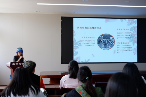 活动伊始,来自哈萨克族、畲族、朝鲜族和回族的学生代表分别介绍了自己的民族特色。他们穿着自己的民族服饰,介绍了自己的民族美食、习俗、文化和民族英雄故事,让同学们对不同的少数民族有了更加深刻的了解。