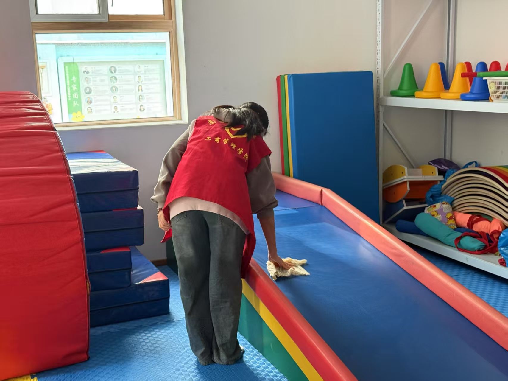 3月2日,学院志愿者团队走进康宇儿童发展中心,开展“爱暖糖宝”主题志愿活动。在康复教室内,志愿者们通过绘画教学、手工制作等寓教于乐的方式,帮助唐氏综合征患儿提升动手能力和社交技能。活动期间,志愿者们还协助整理康复器材、打扫活动区域,为特殊儿童营造整洁温馨的学习环境。参与活动的张同学表示:“孩子们纯真的笑容让我真正体会到奉献的价值,这种双向的温暖治愈让我们对雷锋精神有了更深理解。”