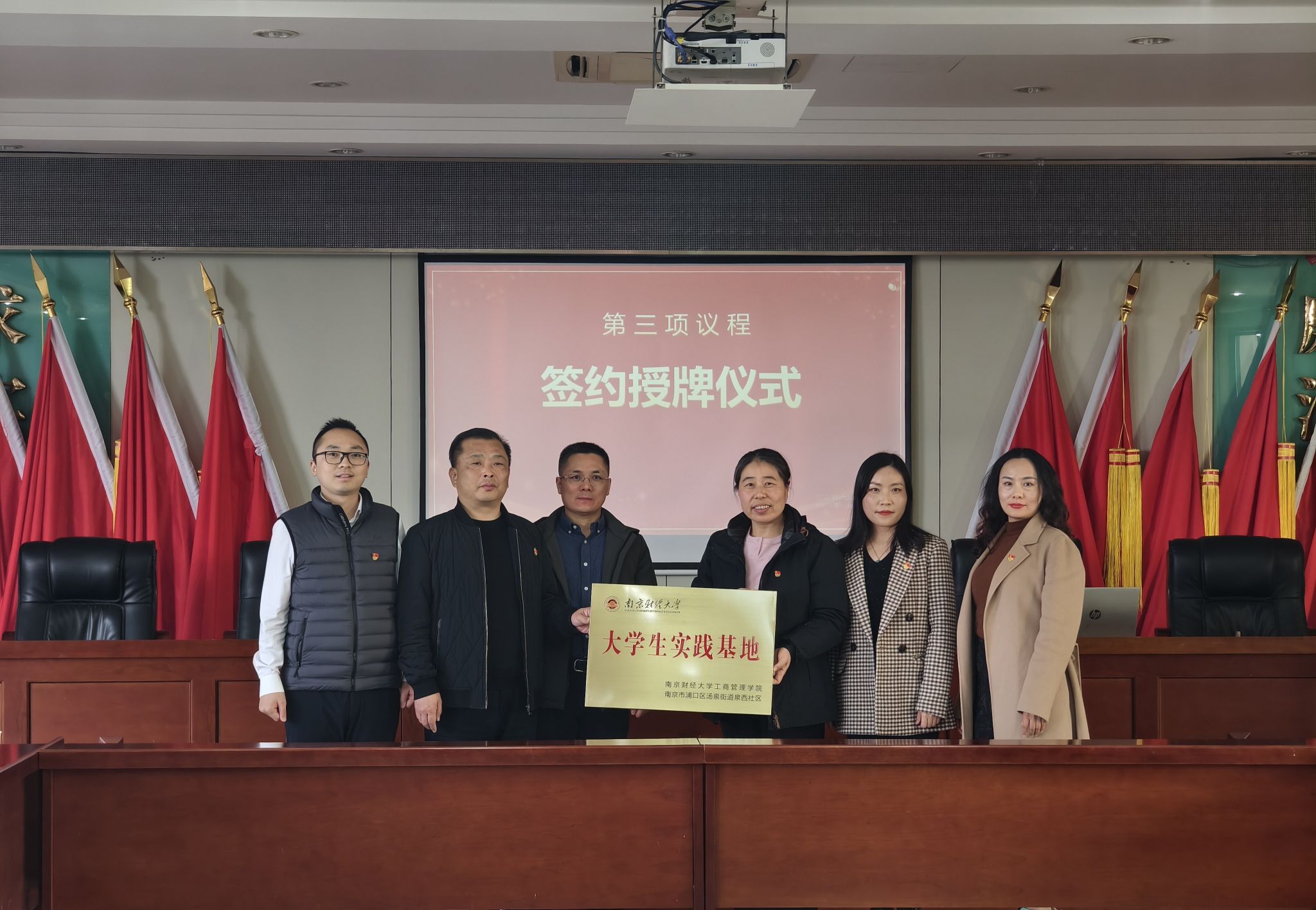 与浦口区汤泉街道泉西社区联合开展党建共建暨大学生实践基地签约揭牌活动。汤泉街道党工委副书记夏海红、汤泉街道泉西社区驻村第一书记李炜,汤泉街道泉西社区党总支书记、居委会主任陈健,91传媒