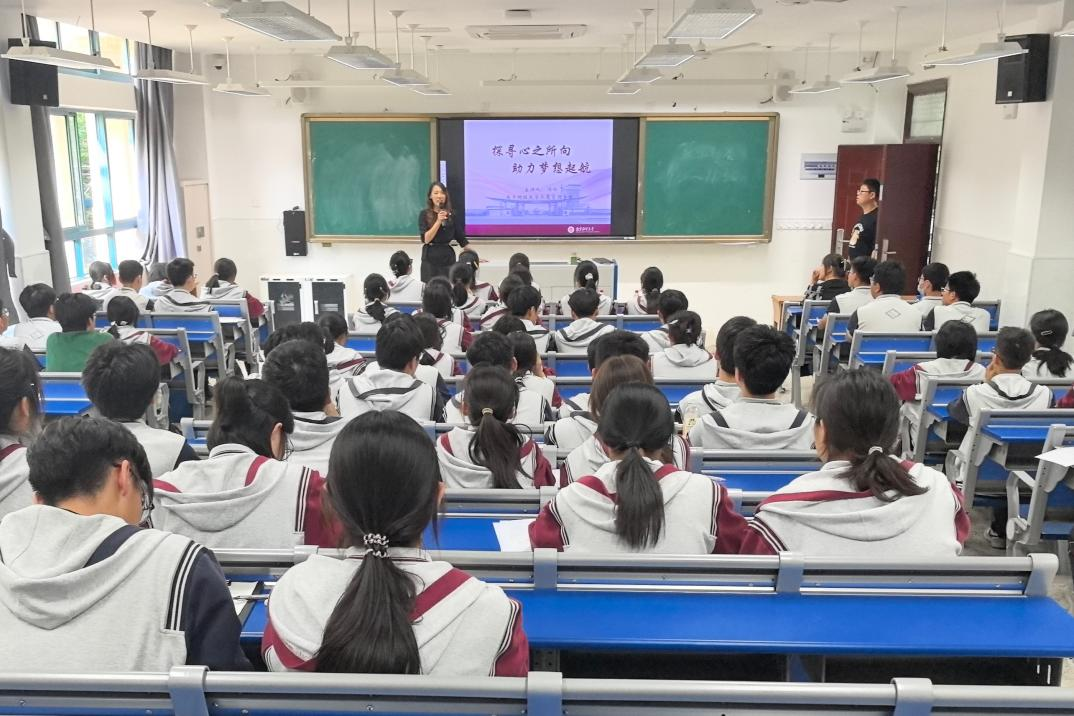 冯玲老师以校友身份,携毕业于江宁高级中学的人资 2402 班邢若桐重返母校,为高二年级学生带来“探寻心之所向,助力梦想启航”职业规划专题讲座。