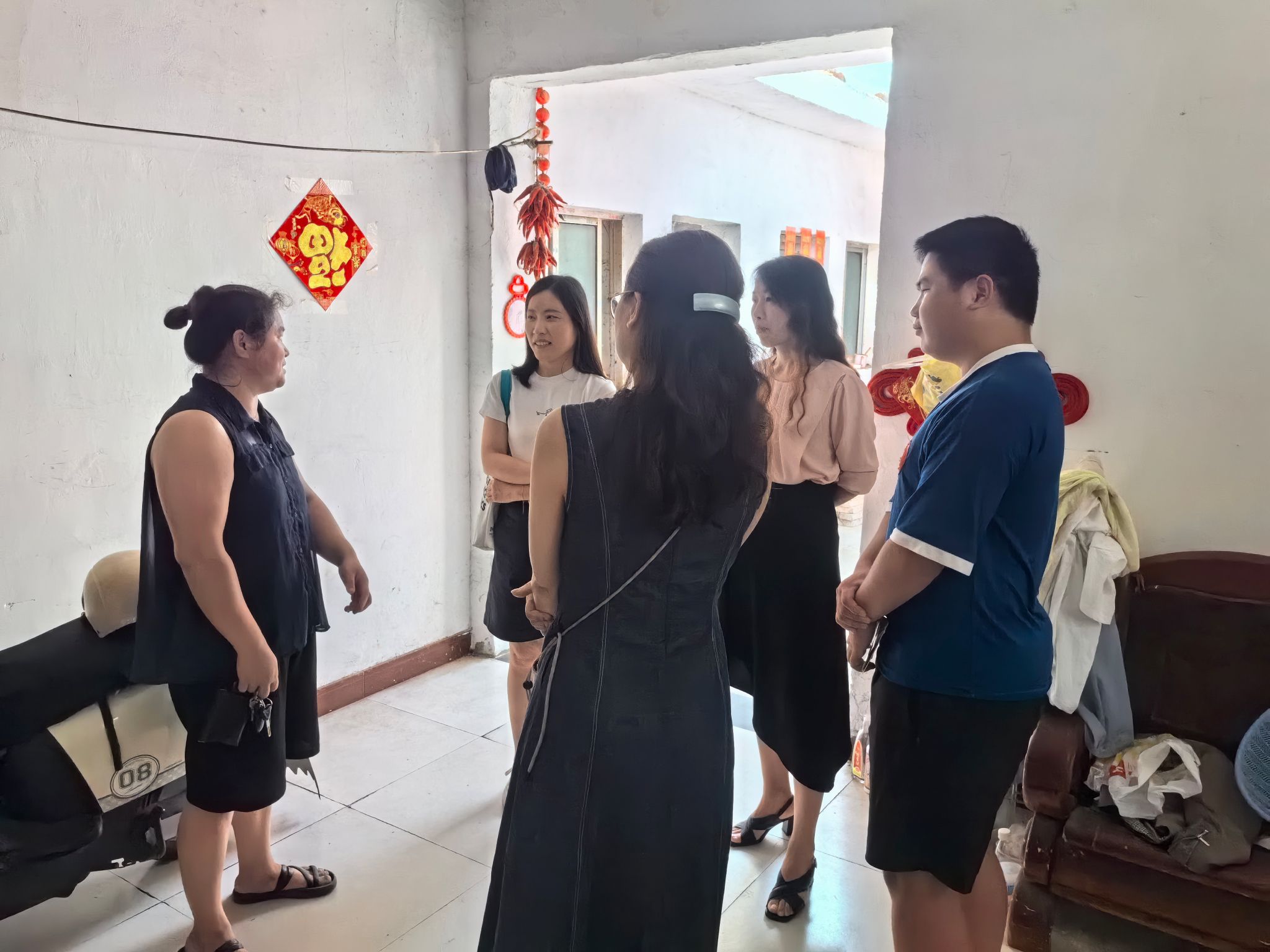 为深入推进家庭经济困难学生资助工作,切实落实“精准资助” 理念,7月5日,院党委副书记尹海燕、学工办主任邱祥霞以及各年级辅导员一行5人,赴江苏宿迁地区对学院4名家庭经济特别困难学生开展实地走访。