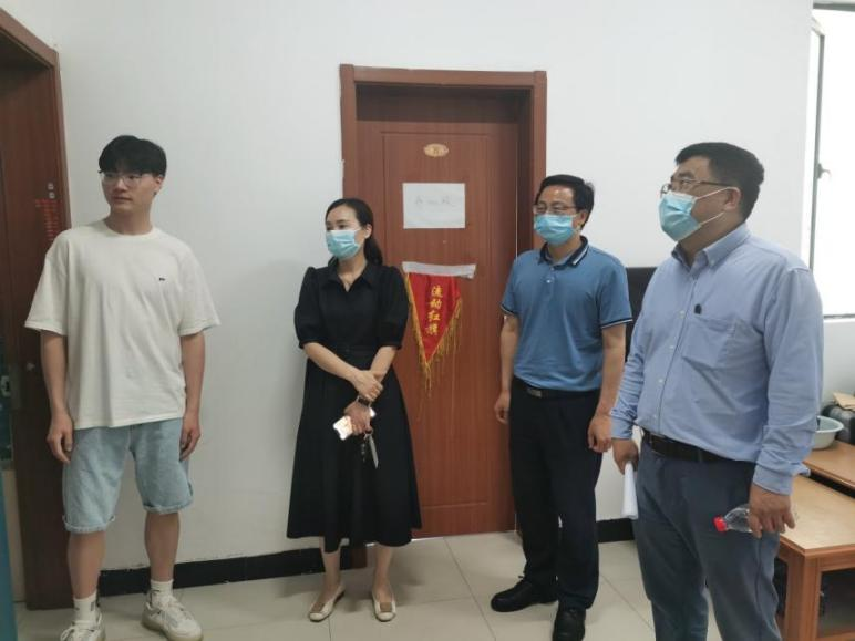 研究生党支部政治辅导员乔均在学院党委书记杨林、组织员邱祥霞、辅导员张鹏岩的陪同下,于6月1日深入研究生宿舍看望学生,开展与学生宿舍结对行动。