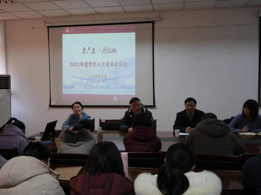 2021年度党外人士意见征求会。学院党委书记杨林、副书记全真真以及无党派人士侯立军、民主党派代表张文勤、吴国英、丁秀玲、朱凌玲等人参加会议,会议由院党委书记杨林主持。