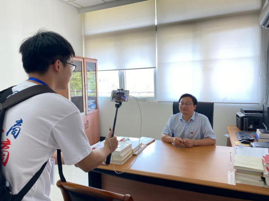 学院党委书记杨林在直播间问候新同学