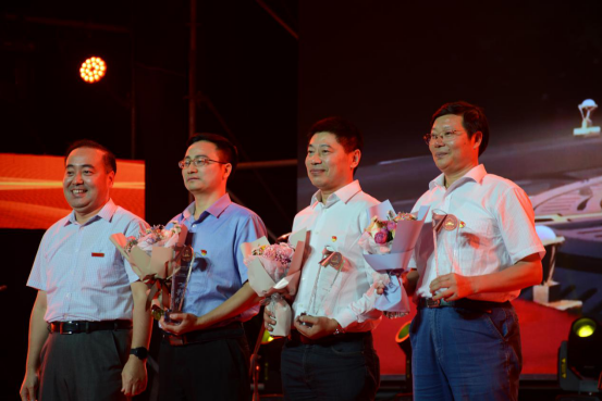 校领导班子成员为获得最佳组织奖的学院颁奖(右二:杨林院长代表91传媒