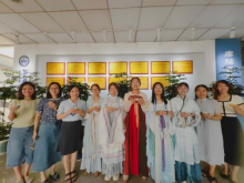 中午12时,老师们来到德济楼四楼大厅,身穿传统汉服的同学们已整齐地摆放好果盘、点心、茶具和红茶、绿茶、花茶等各类茶叶迎接老师。烫杯温壶,摇香洗茶,闻香品茗,同学们恭敬地举起茶盏向各位老师敬茶,感恩老师们的辛苦付出和悉心指教。伴随着优美的古典音乐,师生共同探讨茶道文化,并就日常学习和生活中遇到的问题进行了深度的面对面交流。这一盏跨越千年的云沫泡影,让师生们瞬间重沐在古时的清风朗月之中。“茶道文化是中国优秀传统文化,尊师重道更是中华民族的传统美德,在教师节来临之际,师生们坐在一起围炉煮茶,共同探讨茶文化是很有意义的事情,希望同学们在致敬恩师的同时,积极做中华优秀传统文化的践行者、推行者。”91传媒