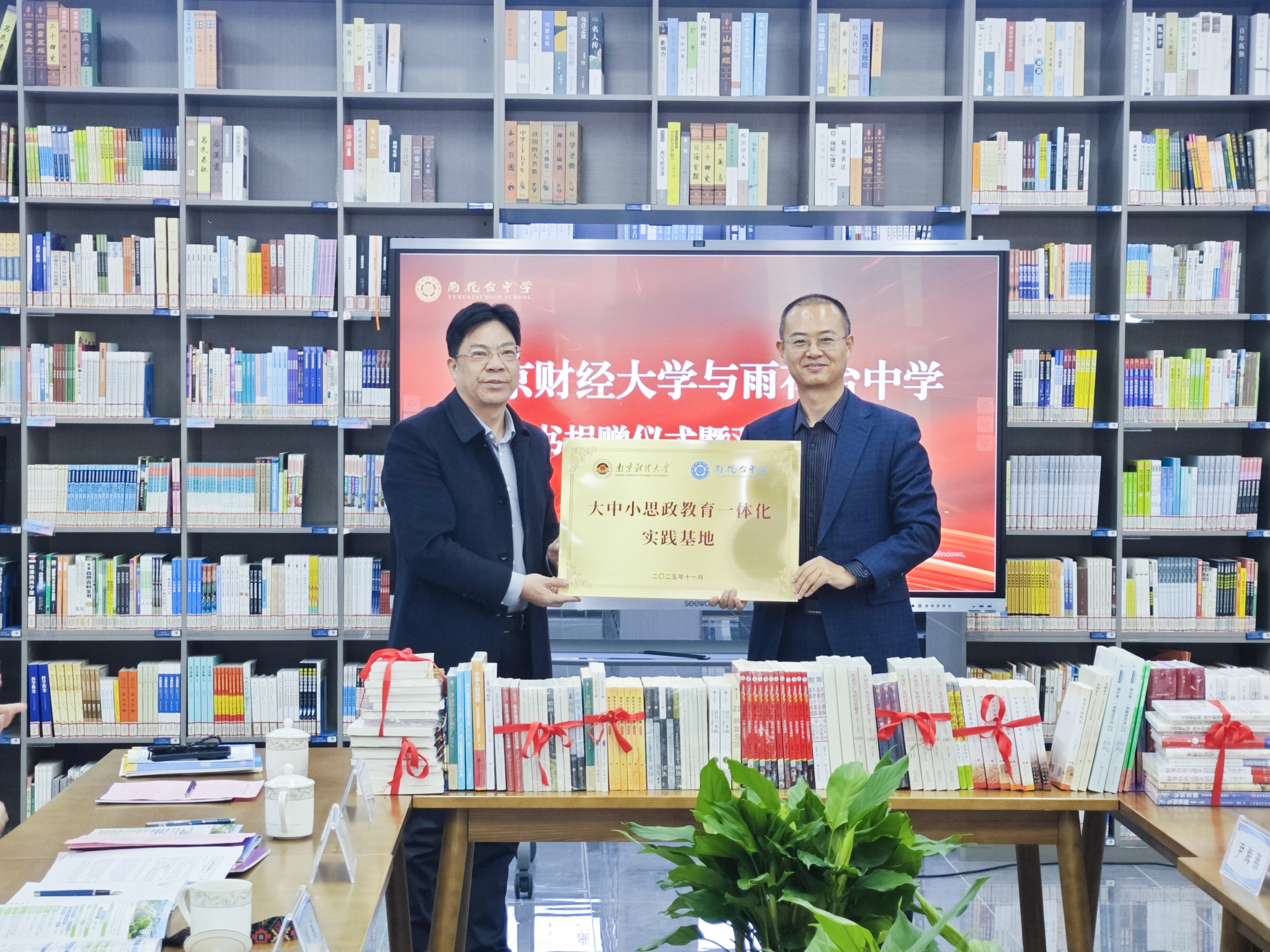 随后,赵光辉书记聘请全真真主任为雨花台中学“科学教育顾问团”顾问并颁发聘书;张杰书记代表我校南京招生组向雨花台中学捐赠图书;刘衍民副校长与赵光辉书记共同为“大中小思政教育一体化实践基地”揭牌,标志着两校在思政教育领域的合作正式迈入实质性阶段,今后将推动基础教育与高等教育在思政育人方面同向同行、协同发力。
