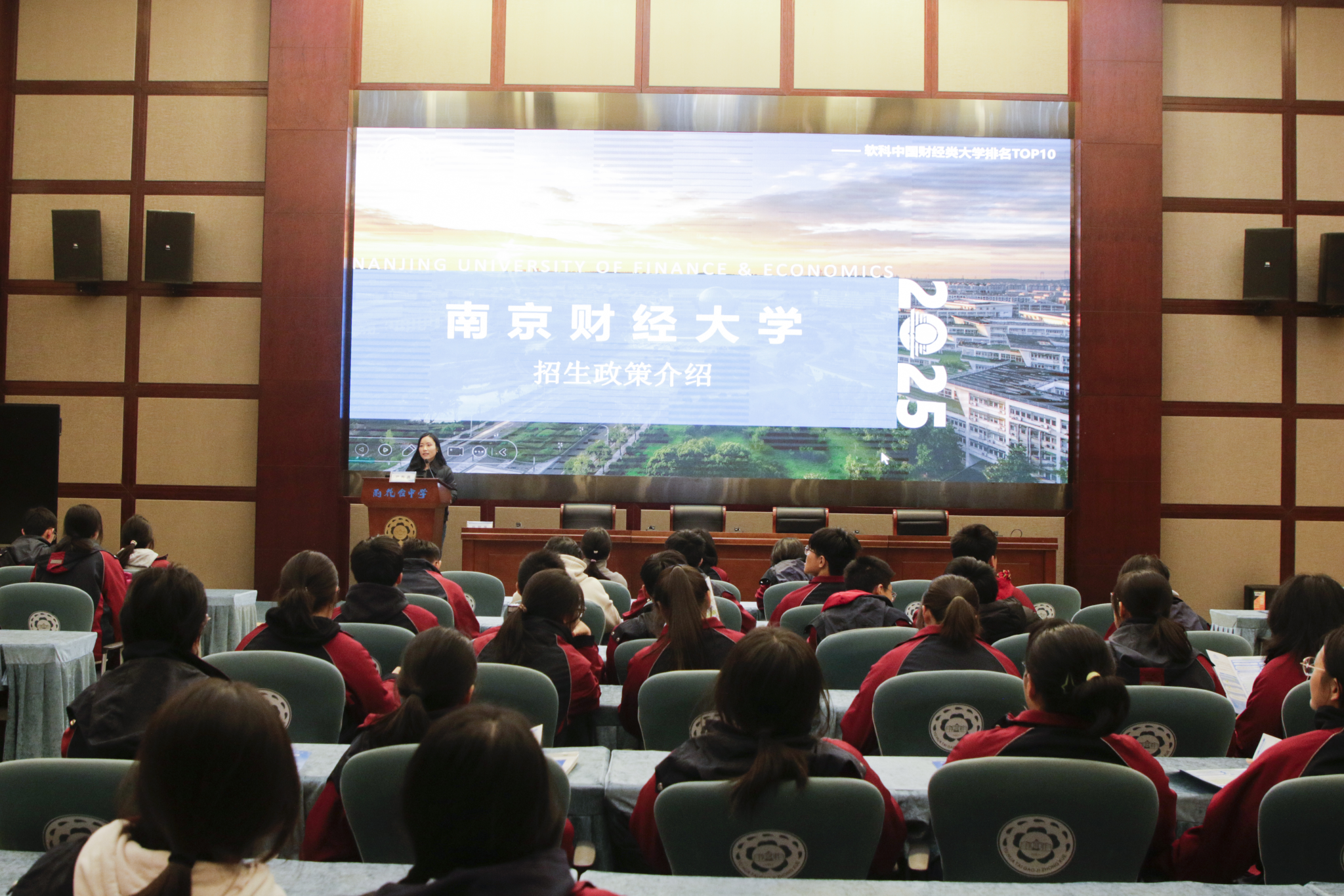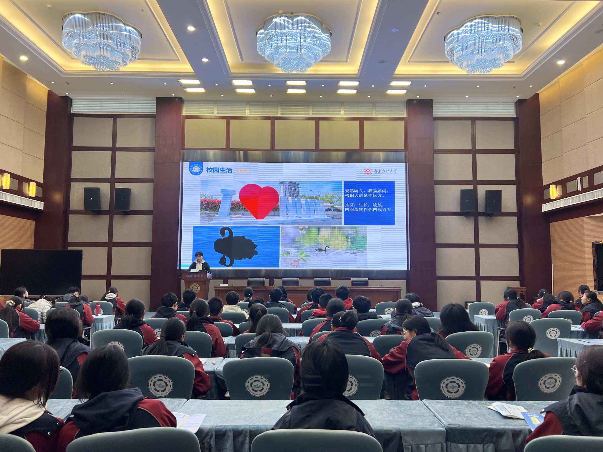 党委副书记尹海燕在雨花台中学国际部报告厅面向部分高三学生开展招生宣讲,用鲜活数据和案例展现南财魅力。同时,我校2024级、2025级雨花台中学毕业生代表重返母校,围绕在校学习生活和生涯发展等学生关注的热点问题进行生动分享与互动交流,现场反响热烈。