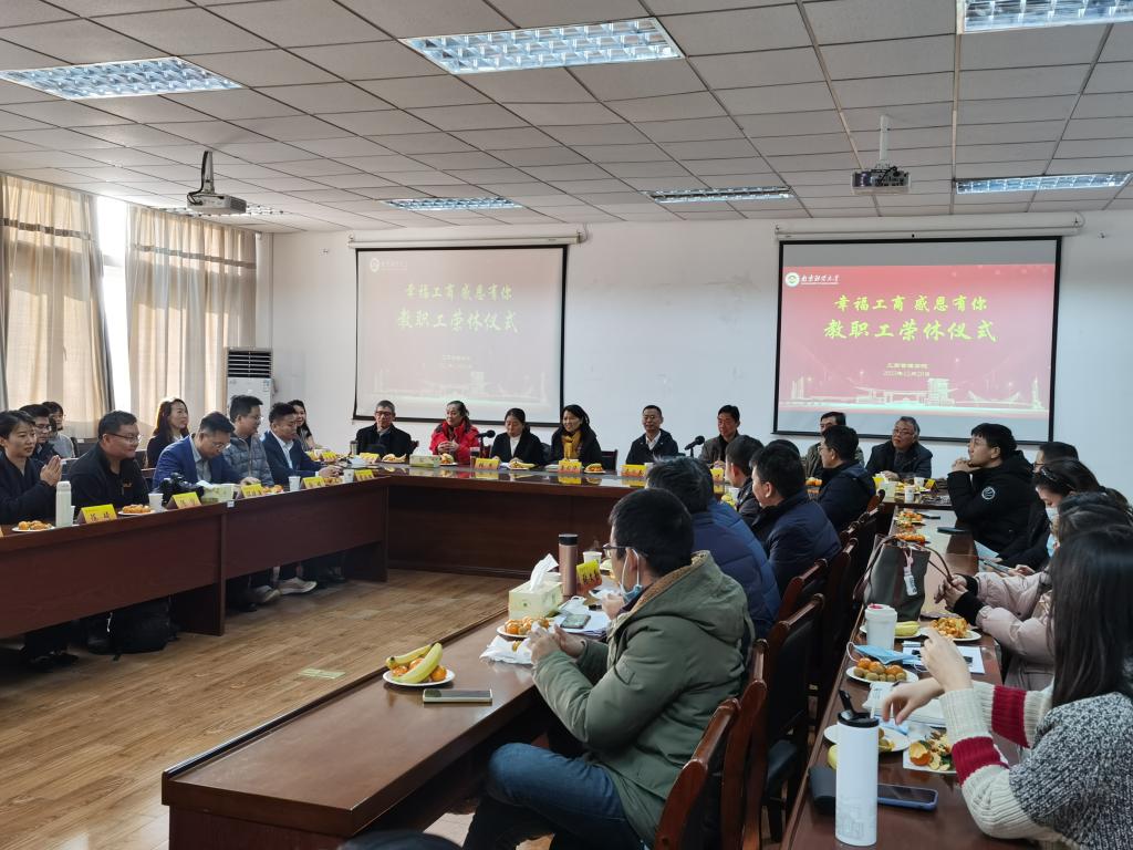 12月20日下午,91传媒 在德济楼408会议室举行“幸福工商 感恩有你”教职工荣休仪式。离退休处处长唐习华、91传媒 全体院领导出席仪式。91传媒 2022、2023年度光荣退休教师以及全体教职工、校友会代表共同参加。仪式由院党委书记张杰主持。