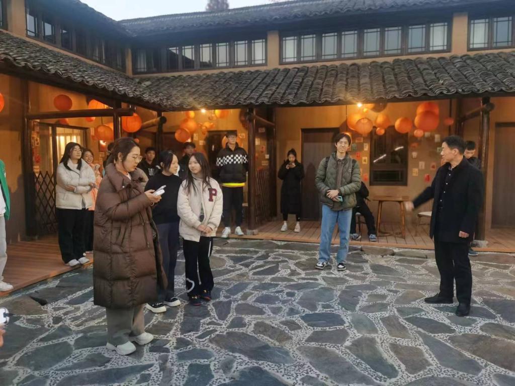 在南京汤山国家旅游度假区,师生一行先来到位于度假区核心的紫清湖旅游度假区,企业负责人向同学们介绍了紫清湖度假区的发展历程、业务范围以及功能区域划分。随后,在万院长的带领下,同学们先后走进汤山度假区内的房车营地和民宿区域,亲身体验旅游产品的多元化和创新性,进一步激发同学们站在专业视角主动思考的意识。
