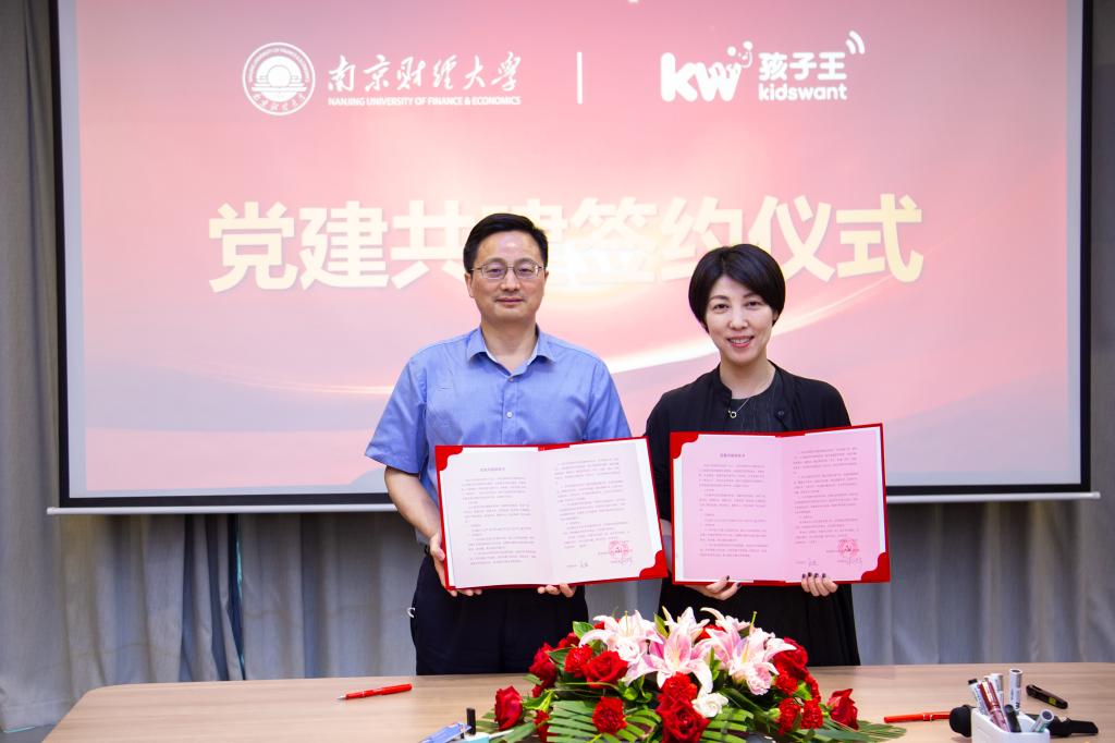 全真真副书记与CFO蔡博代表双方签订就业实习基地协议,杨林书记与助理总裁王坚代表双方签订党建共建协议。