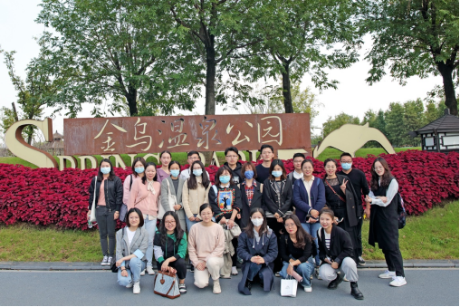 师生在金乌温泉公园门口合影