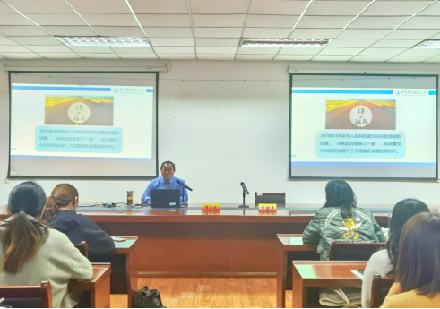 邓爱民院长从背景分析、路径探索、机制创新三个方面,详细论述了新时代文化和旅游产业融合发展的现状及未来趋势。他强调,大众旅游、全域旅游时代的来临为文旅融合提供了全新机遇国内文化旅游市场需求旺盛,融合发展态势空前活跃,文化和旅游实现融合发展是大势所趋。在此基础上,邓爱民教授指出贯彻“创新、协调、绿色、开放、共享”的新发展理念是推动文化和旅游真融合、深融合的关键举措,同时健全相互协调统筹机制,最终一定可以促成以文促旅、以旅彰文、文旅和谐共生的美好格局。最后,邓爱民教授向同学们展示了湖北省文化和旅游融合发展的最新成果。