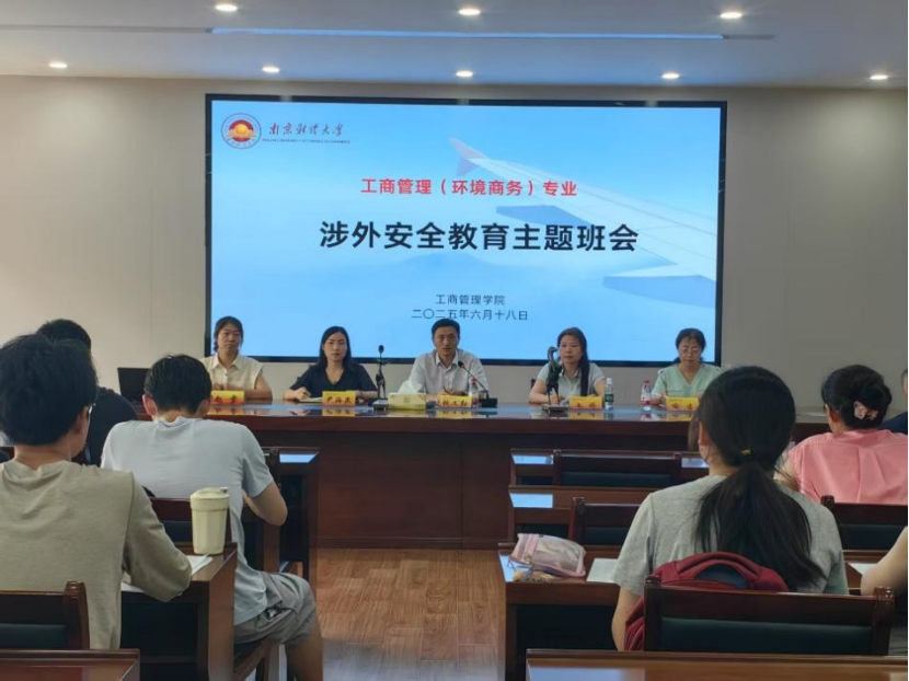 在德济楼408会议室召开工商管理(环境商务)专业涉外安全教育主题会议。院党委副书记尹海燕、副院长张文勤、项目主任文婷、外事秘书喻洁以及2025年拟出国学生参加此次会议,会议由辅导员赵雪主持。